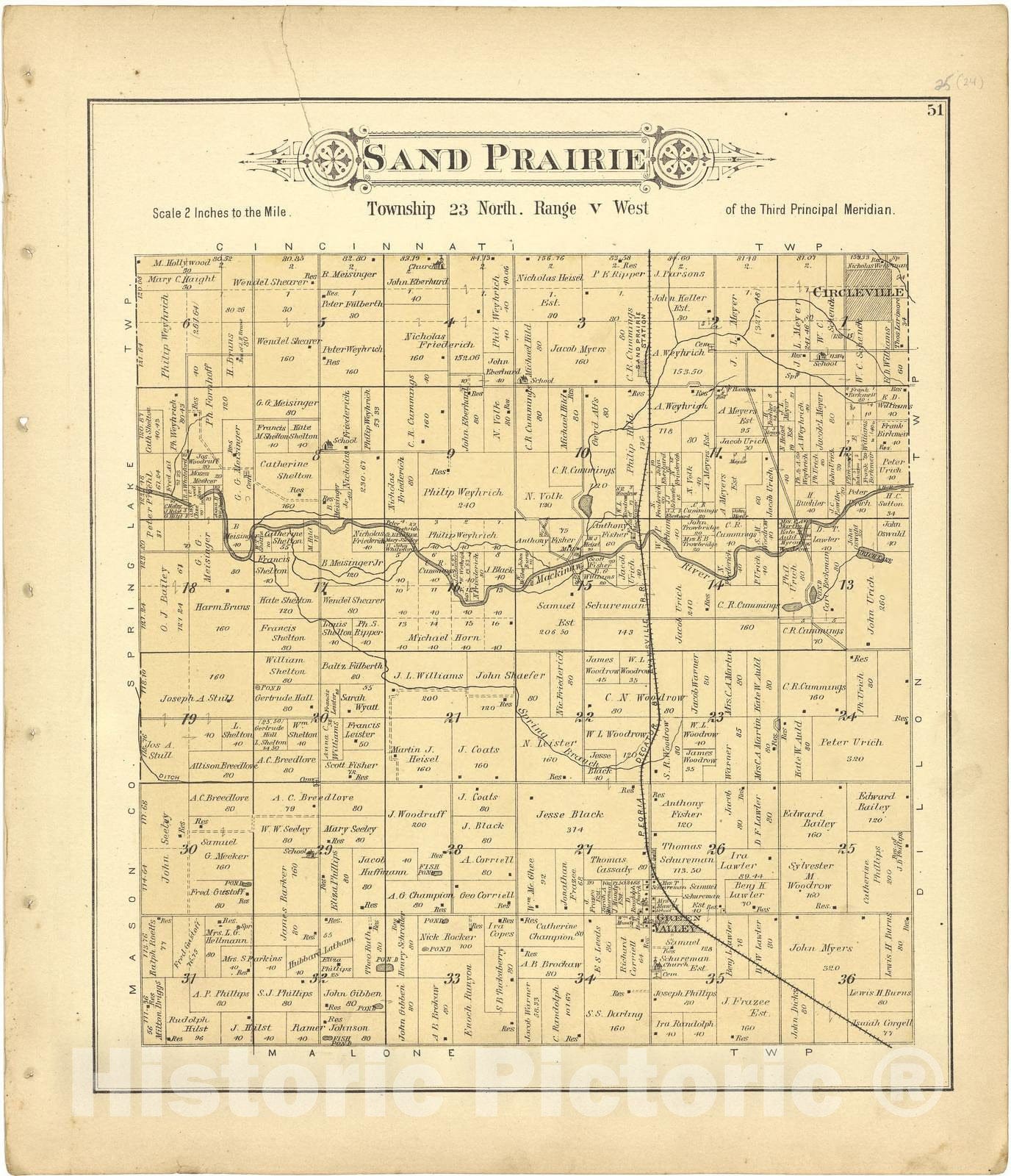 Historic 1891 Map Plat Book of Tazewell County, Illinois Sand